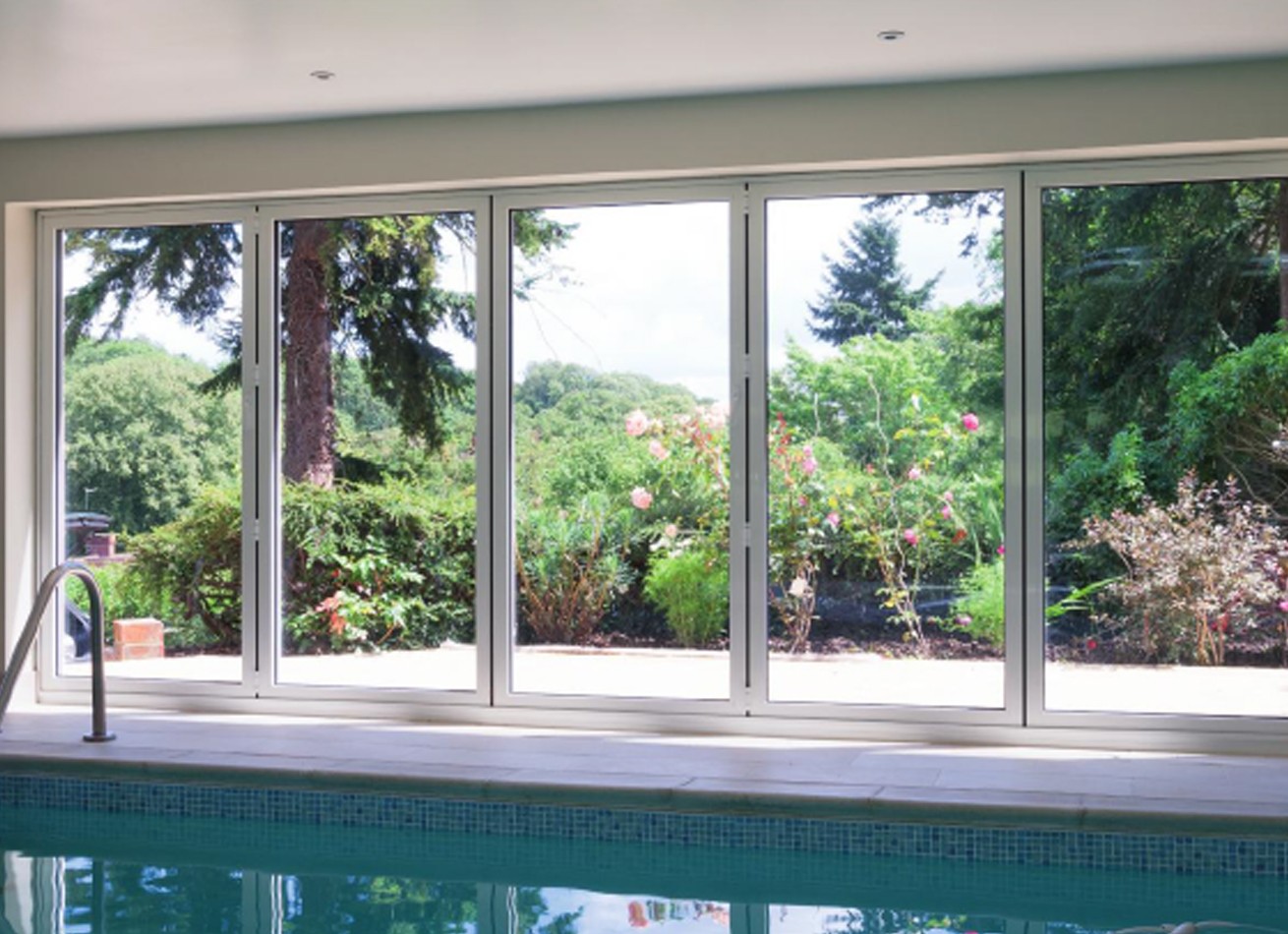 The rigidity of aluminium sections means that these bifolds show more glass and less frame than the uPVC option. In a white finish, they blend in seamlessly with a uPVC conservatory.