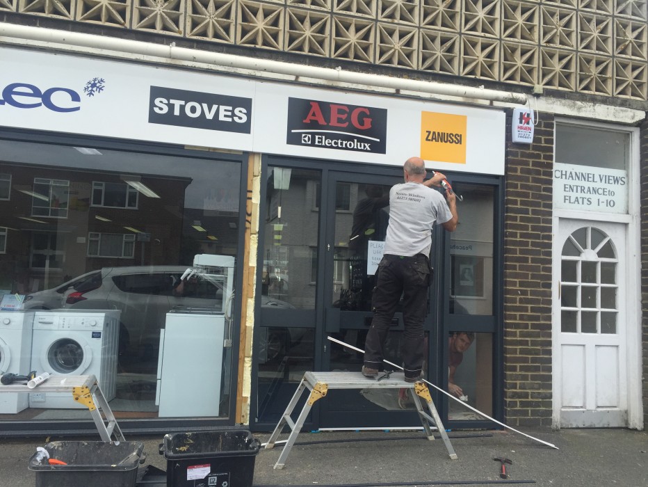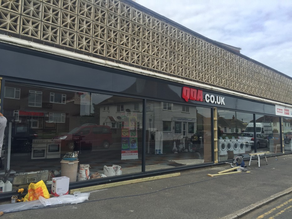 QDA supplies well known brands of electrical white goods for the home. They have a large store here in Peacehaven. We had the pleasure of replacing the old wooden shop frontage with a smart new aluminium shop front. Looking splendid!